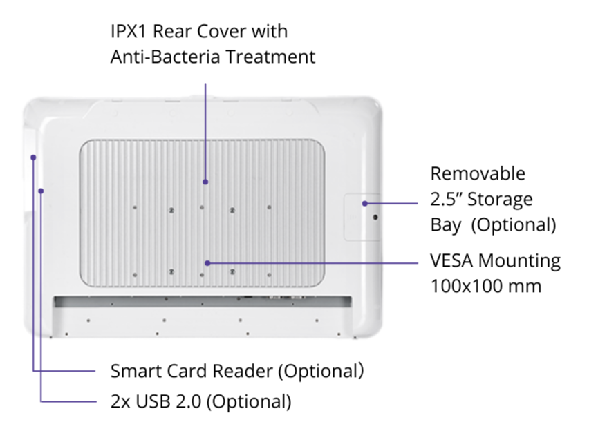 MEDS-P2210-P200 and MEDS-P2410-P200 are IEC/UL 60601-1 and 60601-1-2 (4th edition) certified that can meet global medical safety standards. With optional 3 batteries, their run time can be up to 11 hours on a single charge. Other options are available including DICOM Part 14 Module, 5MP Webcam, Isolated LAN/COM/USB, AG Film, RFID, Smart Card Reader, FHD Capture Card, WiFi+BT5.0, TPM 2.0 module and many more.